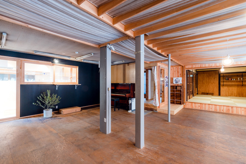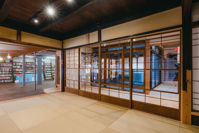 雲南市三刀屋町の連坦地に建つ大きな構えの町屋の改修です。そこは地域住民の拠り所であった書店でした。2005年から、複数の運営主体がひとつ屋根のしたで活動する「みとや世代間交流施設ほほ笑み」として活用されてきました。