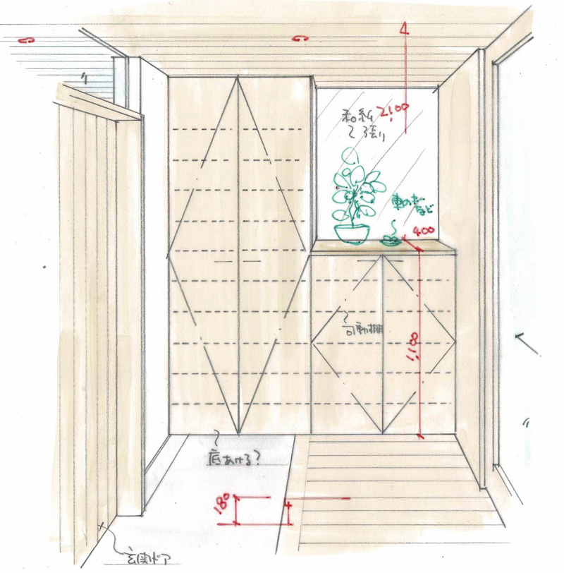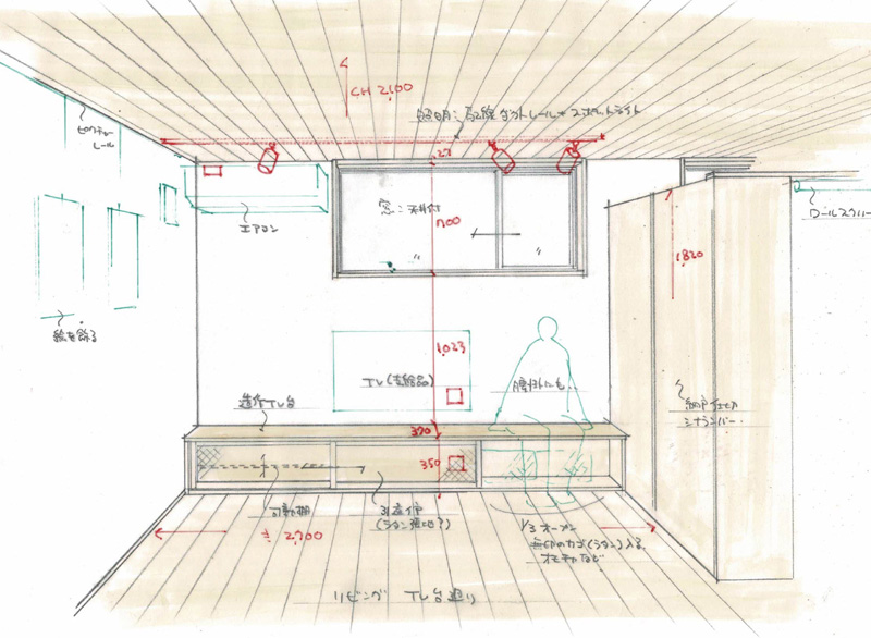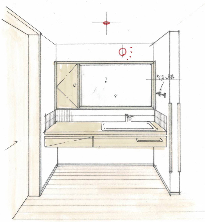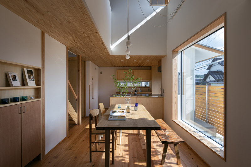 視線が抜ける先には開口部を設けます。光を受けとめる天井と壁。