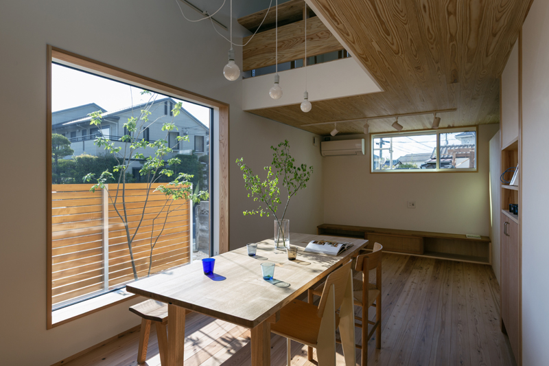 天井高さは2100ミリ。回遊する動線や、視線の抜け、光を受けとめる天井や壁のおかげで伸びやかな場が生まれました。