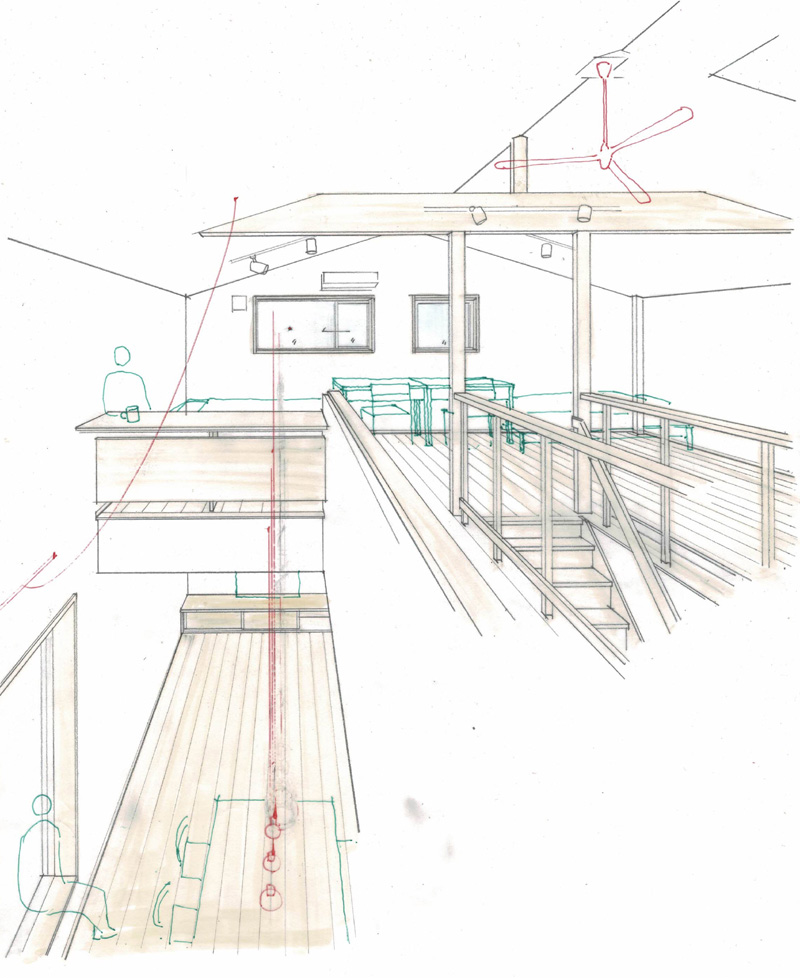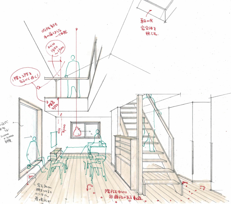階段は上下階もつなぐので、立体的な回遊性も生まれました。