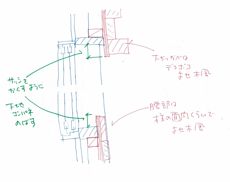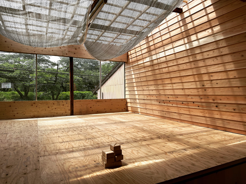 上方から光が落ちる場のデザインは光を受ける壁の仕上がポイントになります。下見板張りとすることで陰影が生まれました。